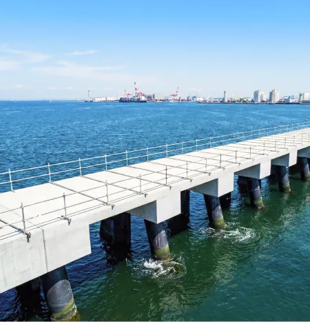 横河NSエンジニアリングは、橋梁事業とエンジニアリング事業を両翼に展開する総合エンジニアリング企業です。橋梁の新設・保全から、地下構造物、港湾構造物、洋上風力発電などの新エネルギー関連設備まで、幅広い領域で社会インフラを支えています。ここでは、私たちの事業概要と強みをご紹介します。
