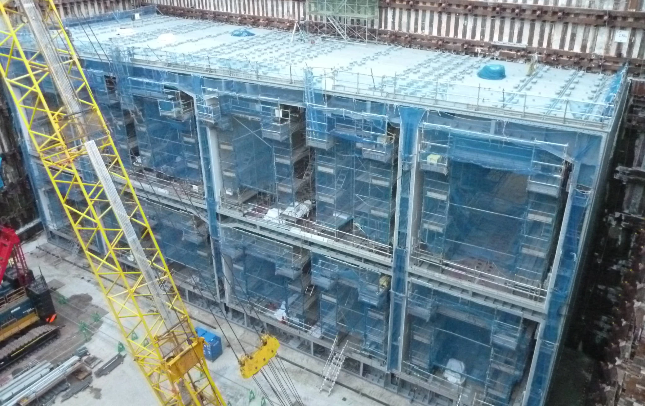 あらゆる地下構造物に適用可能な鋼管柱です。厚肉の鋼管だけで支持する厚肉鋼管柱や、現場でコンクリートを充填する合成鋼管柱があります。最近では、新設ビルと地下鉄・地下街との接続通路や既設地下構造物の改良工事などの需要が増えています。